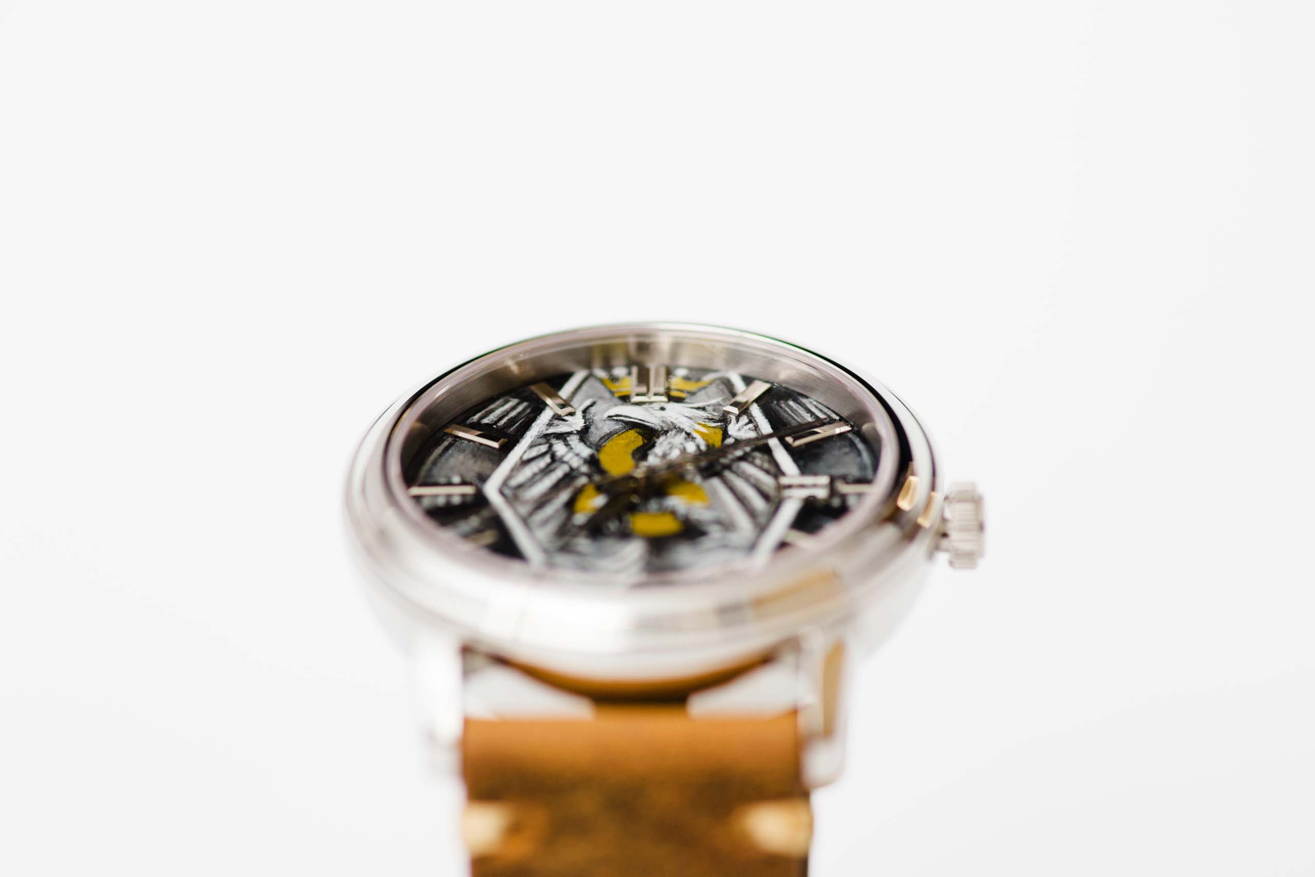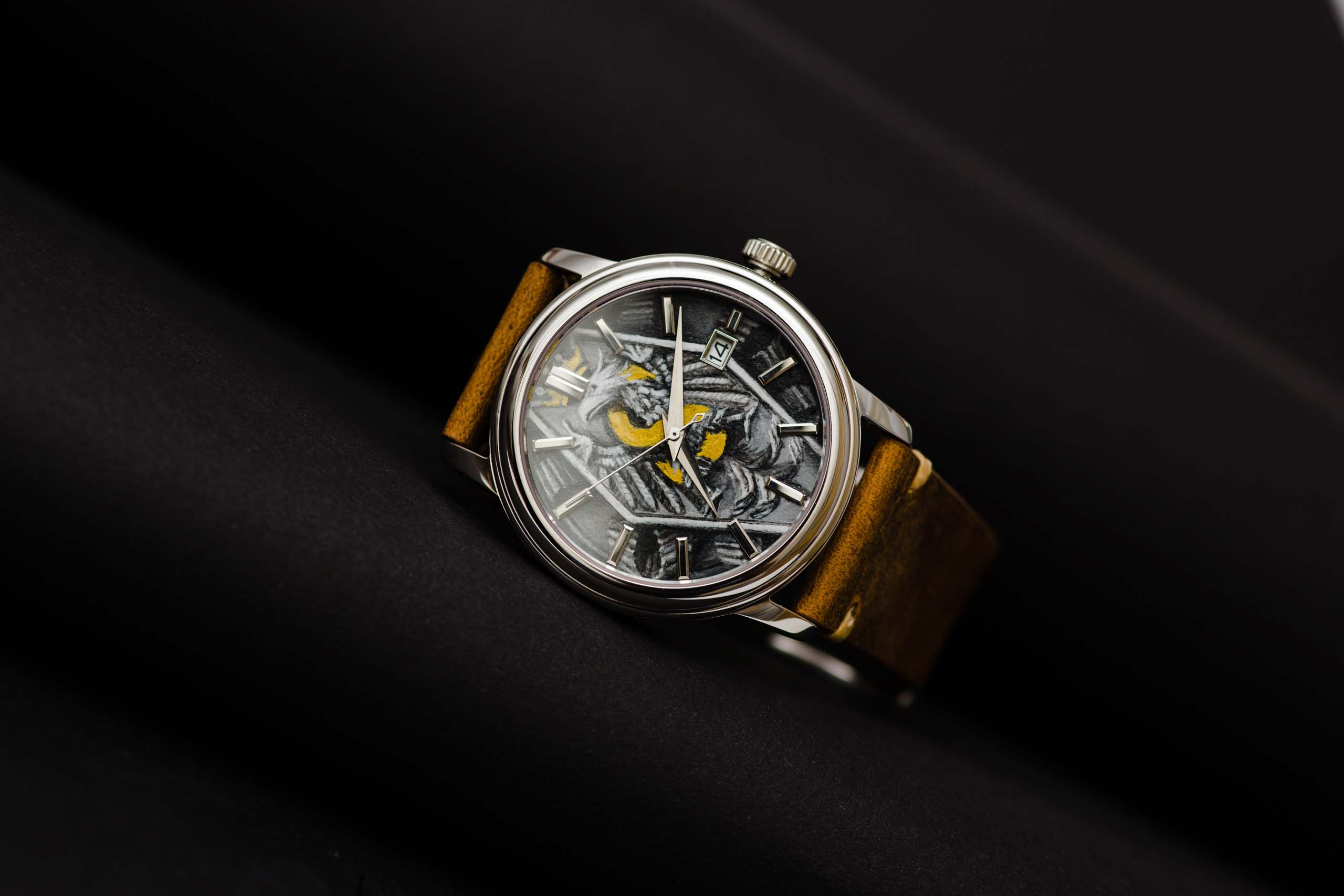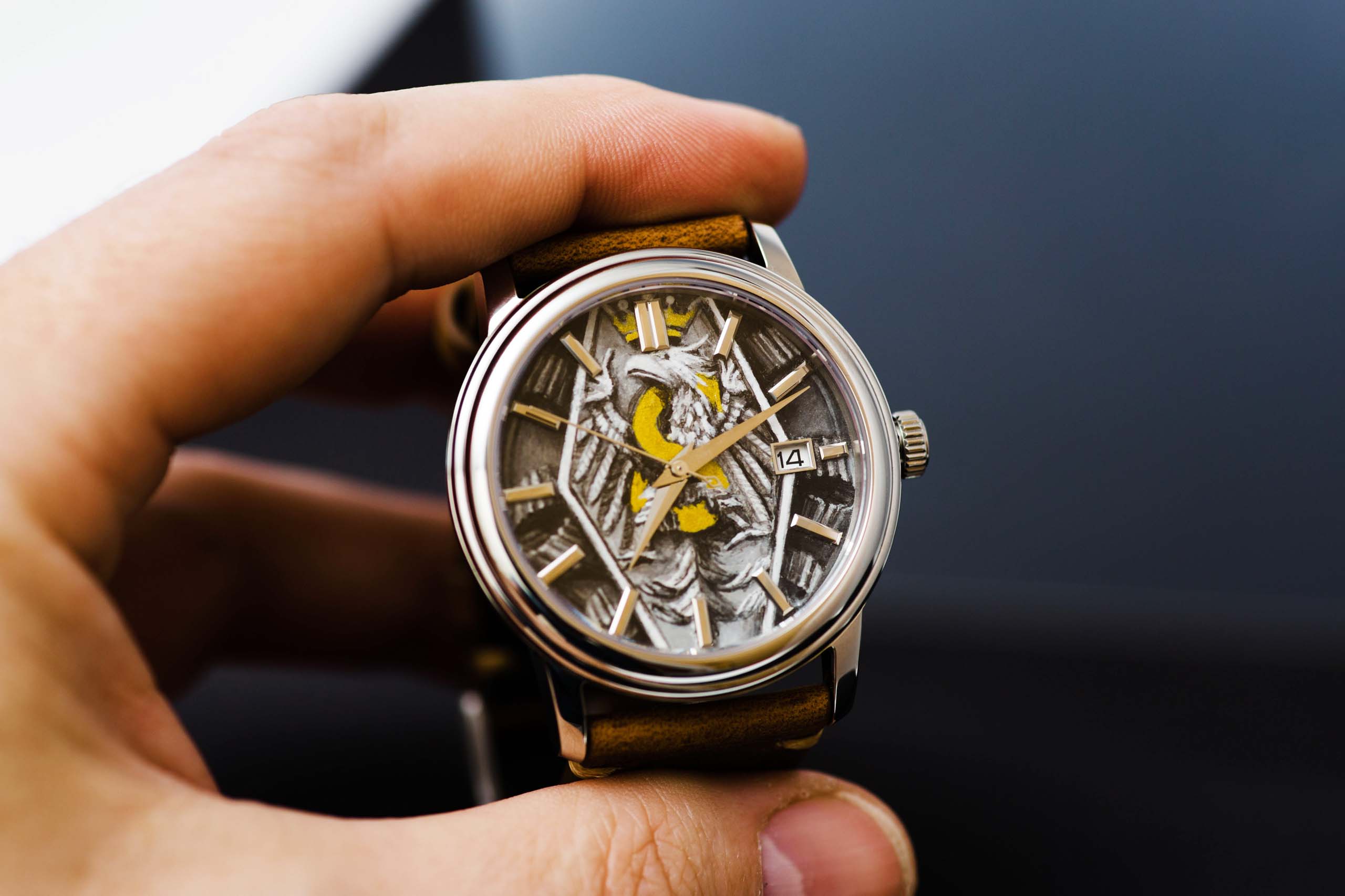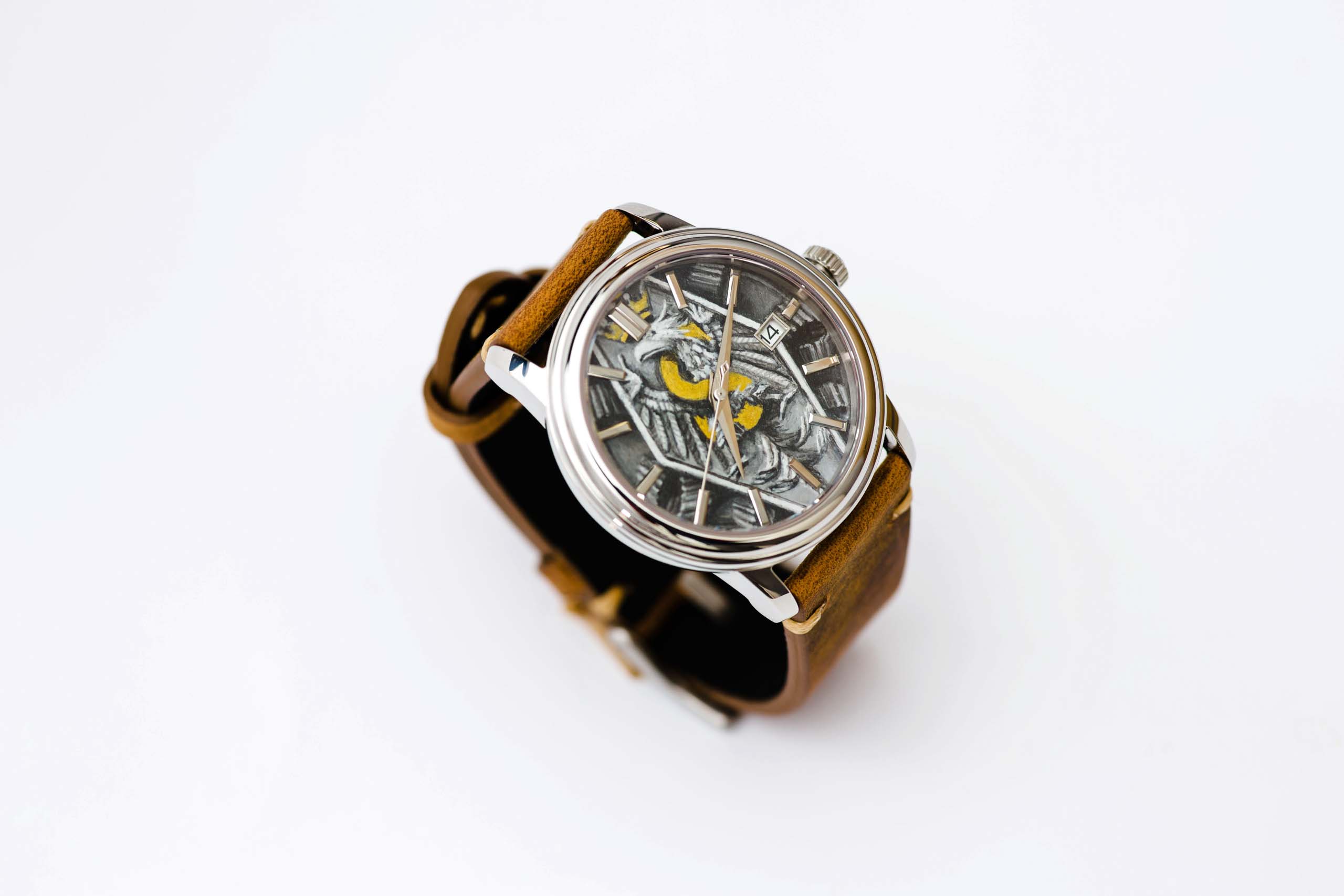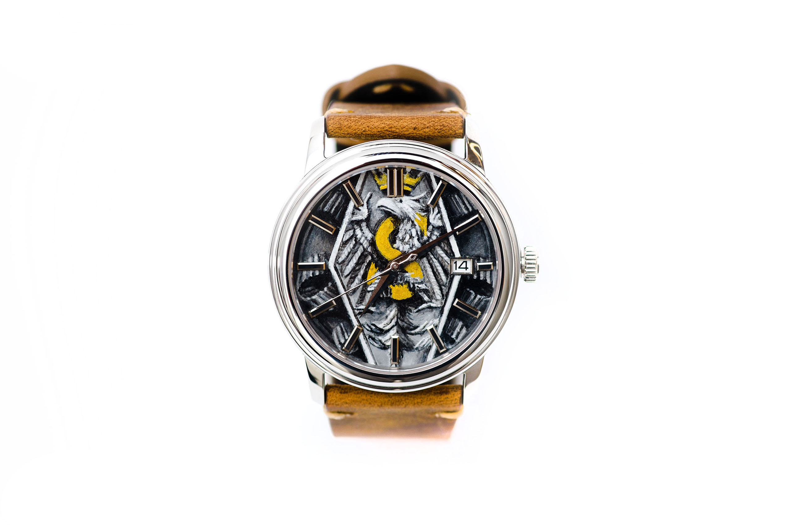 Zegarek jedyny w swoim rodzaju, wykonany na specjalne zamówienie. Niepowtarzalny czasomierz, który łączy w sobie sztukę i rzemiosło. Jego tarcza została ręcznie namalowana w unikatowy wzór inspirowany herbem Zygmunta I Starego, jest absolutnie wyjątkowa – na świecie istnieje tylko ten jeden egzemplarz. Każdy detal powstał z pasji i precyzji. Zegarek został ręcznie złożony, oparty na niezawodnym mechanizmie SEIKO NH36, zamknięty w eleganckiej kopercie ze stali nierdzewnej i zabezpieczony szkłem szafirowym, odpornym na zarysowania. Uzupełnia go pasek z wysokiej jakości, naturalnej skóry bydlęcej, który z czasem zmienia swój charakter. Zwieńczeniem jest eleganckie pudełko z przeszkleniem, przez które można obserwować piękno tarczy i pracę czasomierza.
